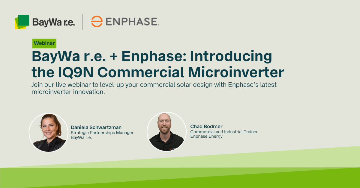 BayWa r.e. Solar Distribution supplies residential and commercial solar installers in the United States with quality solar + storage components, forecasting, business planning advice, and a community of experts. Visit www.solar-distribution.com to engage with our team, read our industry insights articles, and stream our Solar Tech Talk podcasts and recorded webinars on YouTube and Spotify. Follow us on LinkedIn and Facebook to stay connected. Ask us about our Financing Program and use our industry-leading Webstore to save time, get gear shipped, and get jobs done!